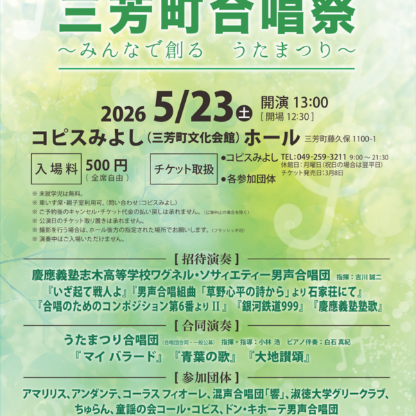 - 募集中! 令和5年度三芳町芸術文化支援事業の募集