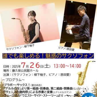 開催日時: 2025年12月20日 (土) 開演時刻 13:00、(14:00終了予定) 内容 : 冬の午後、心温まる演奏をお届けします。